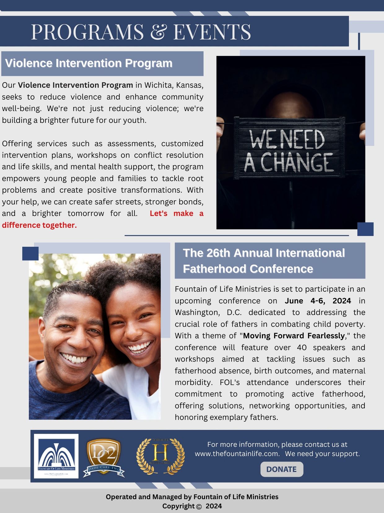 Fountain of Life Ministries offers Family Support & Educational Services to strengthen families and empower individuals. Through counseling, education, and practical assistance, they foster healthier communities.